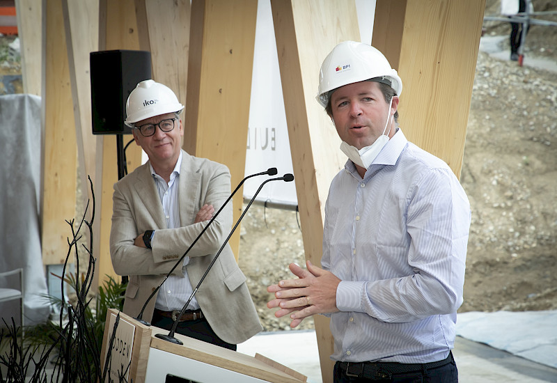 La construction de l’immeuble de bureaux Wooden a débuté fin 2020, un lancement officialisé ce lundi à l’occasion d’une cérémonie de la « première branche ». L’événement s’est déroulé en présence de M. Raphaël Gindt, Échevin de la commune de Leudelange, de MM. Eric Lux et Arnaud Regout, Managing Directors des co-promoteurs IKO Real Estate et BPI Real Estate Luxembourg, de M. Romain Braas, CEO de Bâloise Assurances Luxembourg, qui sera le locataire principal du bâtiment, ainsi que des constructeurs CLE, Wood Shapers et de l’architecte ArtBuild Architects.